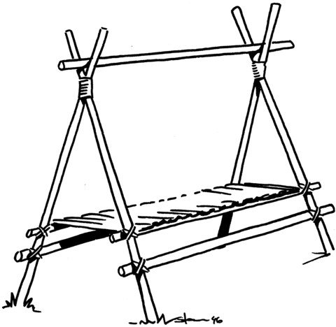 Pilte snitter i træ, laver bål, og lærer så småt at bygge med rafter.